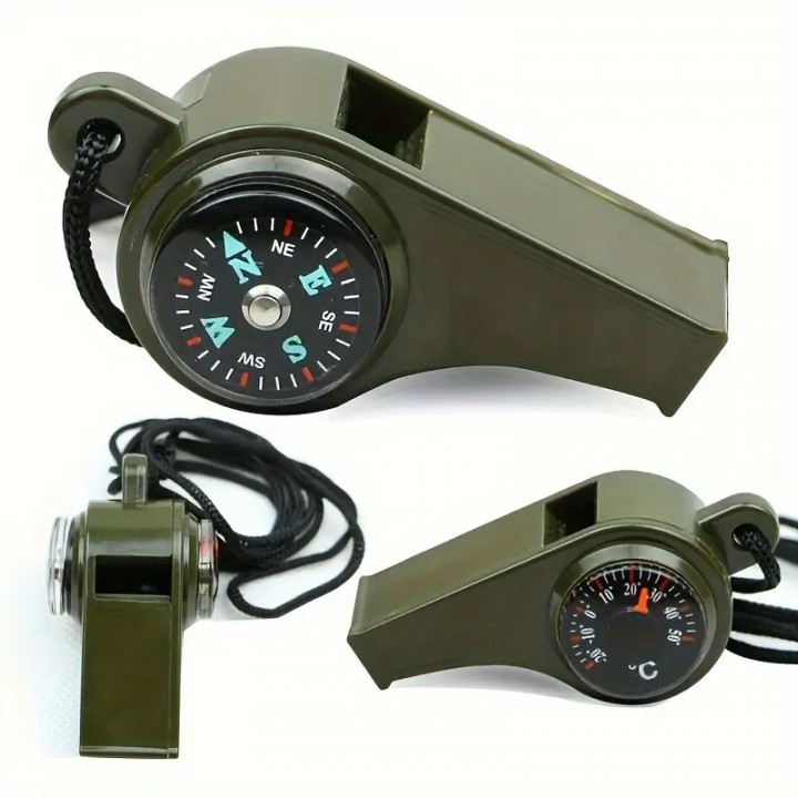 3 In 1 Acil Kurtarma Düdüğü, Pusula, Termometre, Hakem Cheerleading Düdüğü, Spor Malzemeleri, Kamp Yürüyüş Açık Hava Araçları, Açık Hava Yüksek Desibel Taşınabilir Anahtarlık Düdüğü Çift Borulu Acil Kurtarma Düdüğü Çok Fonksiyonlu Araçlar