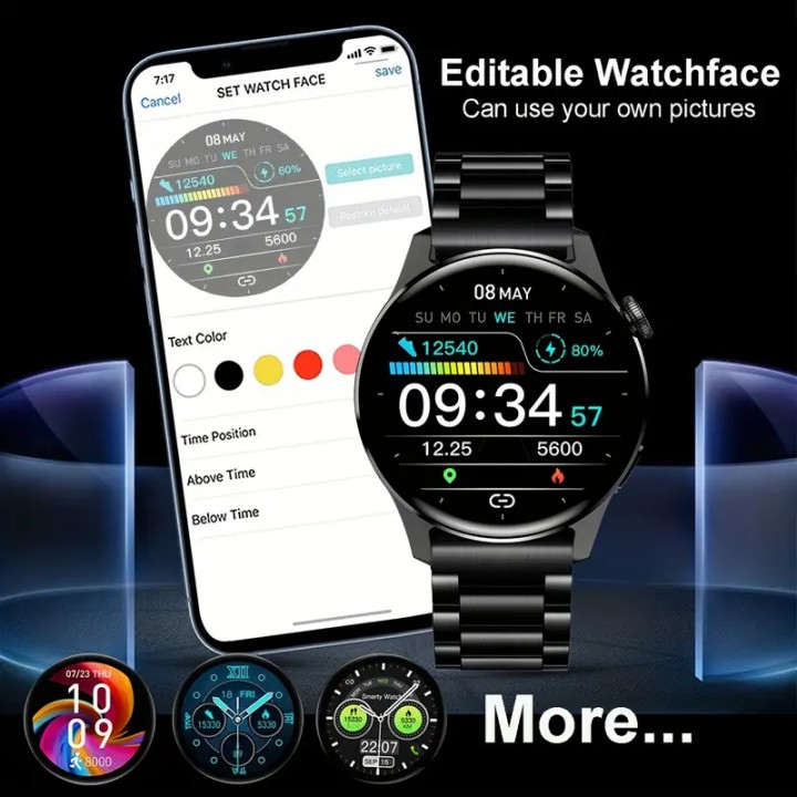 Paslanmaz Çelik Kayış İş Erkek Akıllı Saat Çağrı, Mesaj Hatırlatıcısı, Müzik Çalar, Aktivite Takipçisi Spor Saat iPhone ve Android için